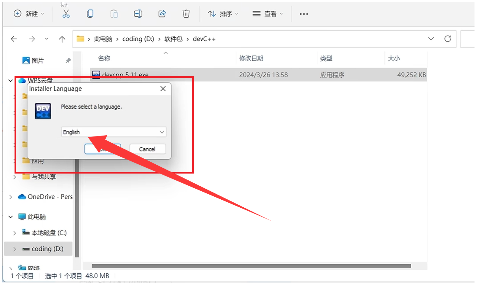 双击下载的.exe文件(如 Dev-Cpp_5.11_TDM-GCC_4.9.2_Setup.exe)。