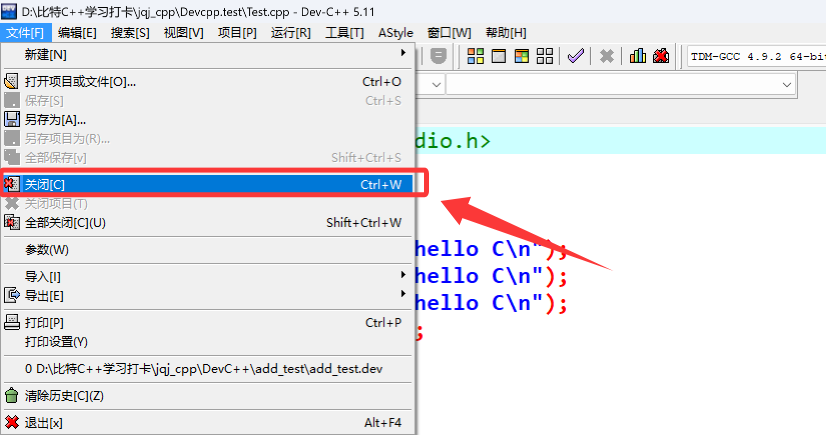 Ctrl+W | 关闭当前文件 |