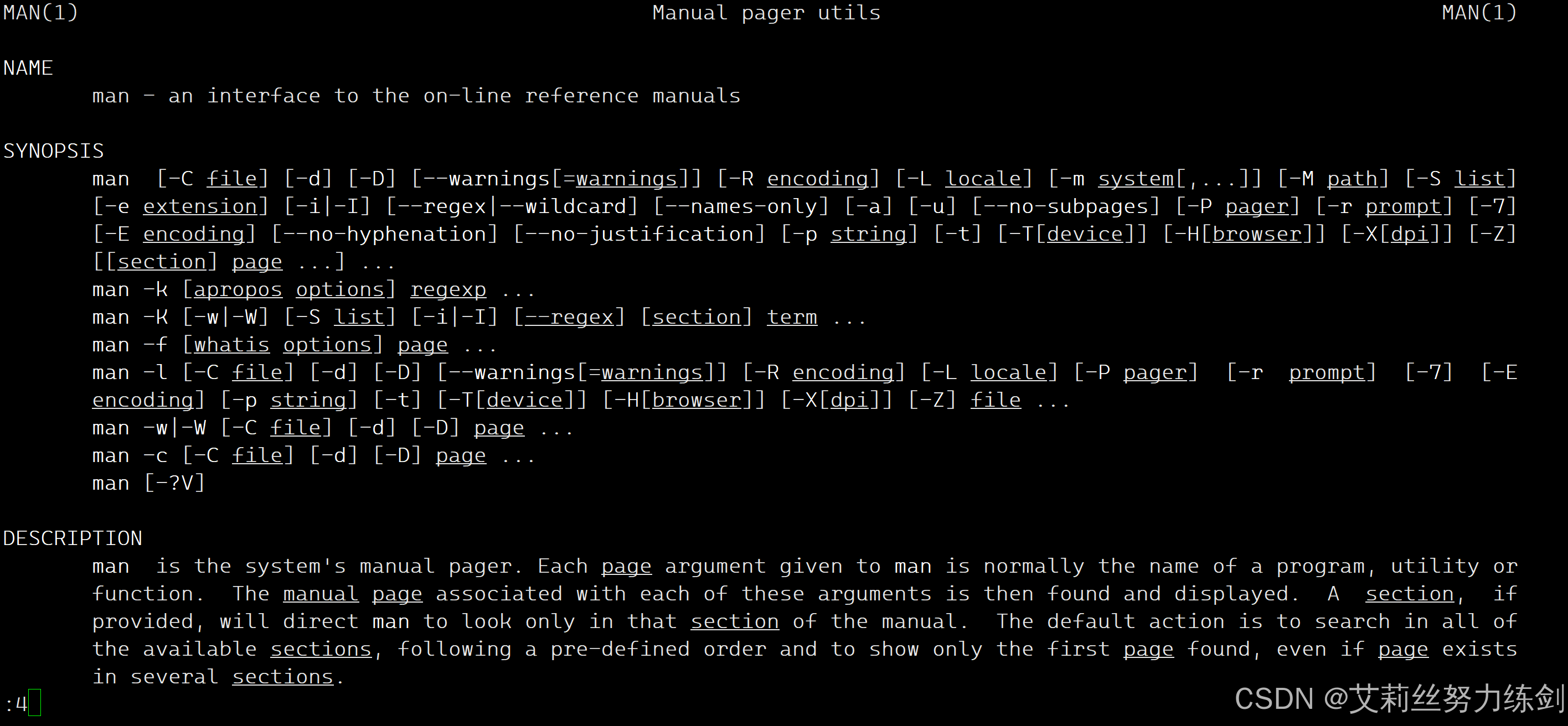 man命令:查看指定命令的使用手册,是在线查看手册的工具。