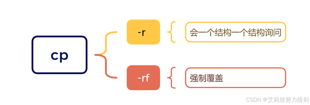 -f:force强制的意思,如果目标文件已经存在,不会询问而直接覆盖。