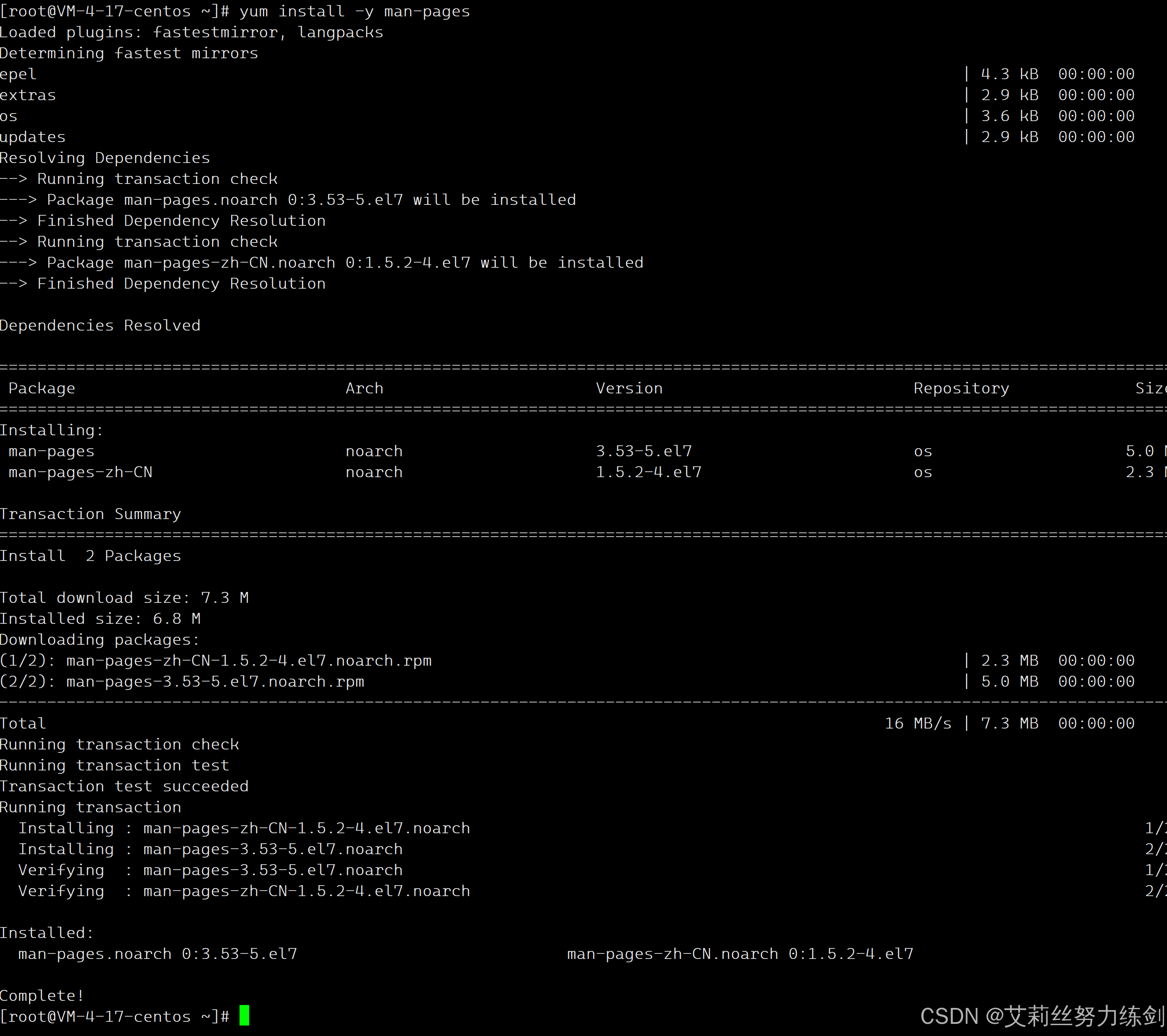 man——云服务器可能没有安装man指令,就像下面这样下载一下——