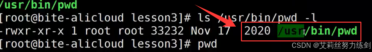 关系:这里 ls 是 ll的别名(带颜色),ll命令是ls -l的别名。