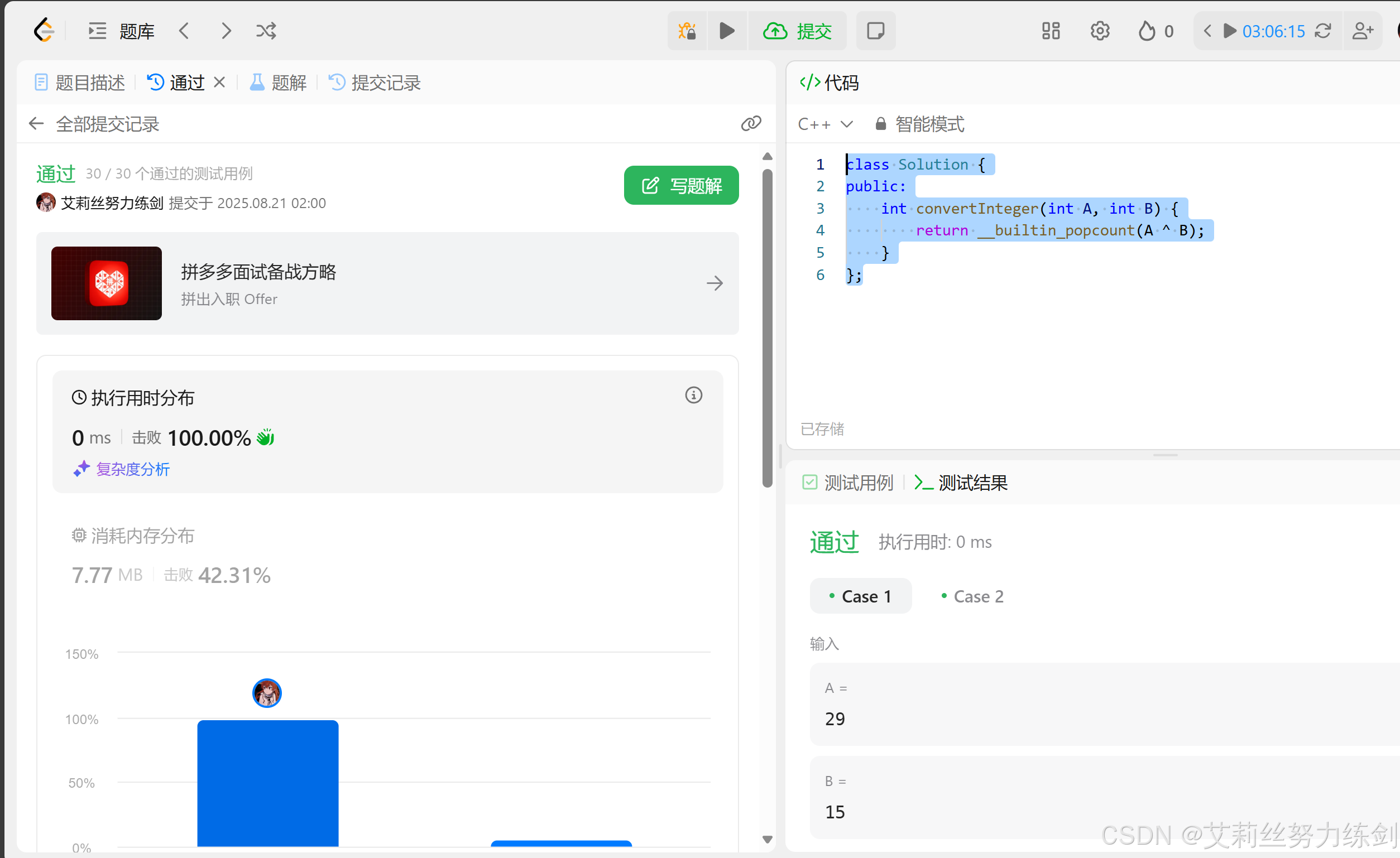 是不是直接薄纱?哈哈哈,C++有时候就是这样,所以我们学习了C++再去刷题,会很“有趣”。
