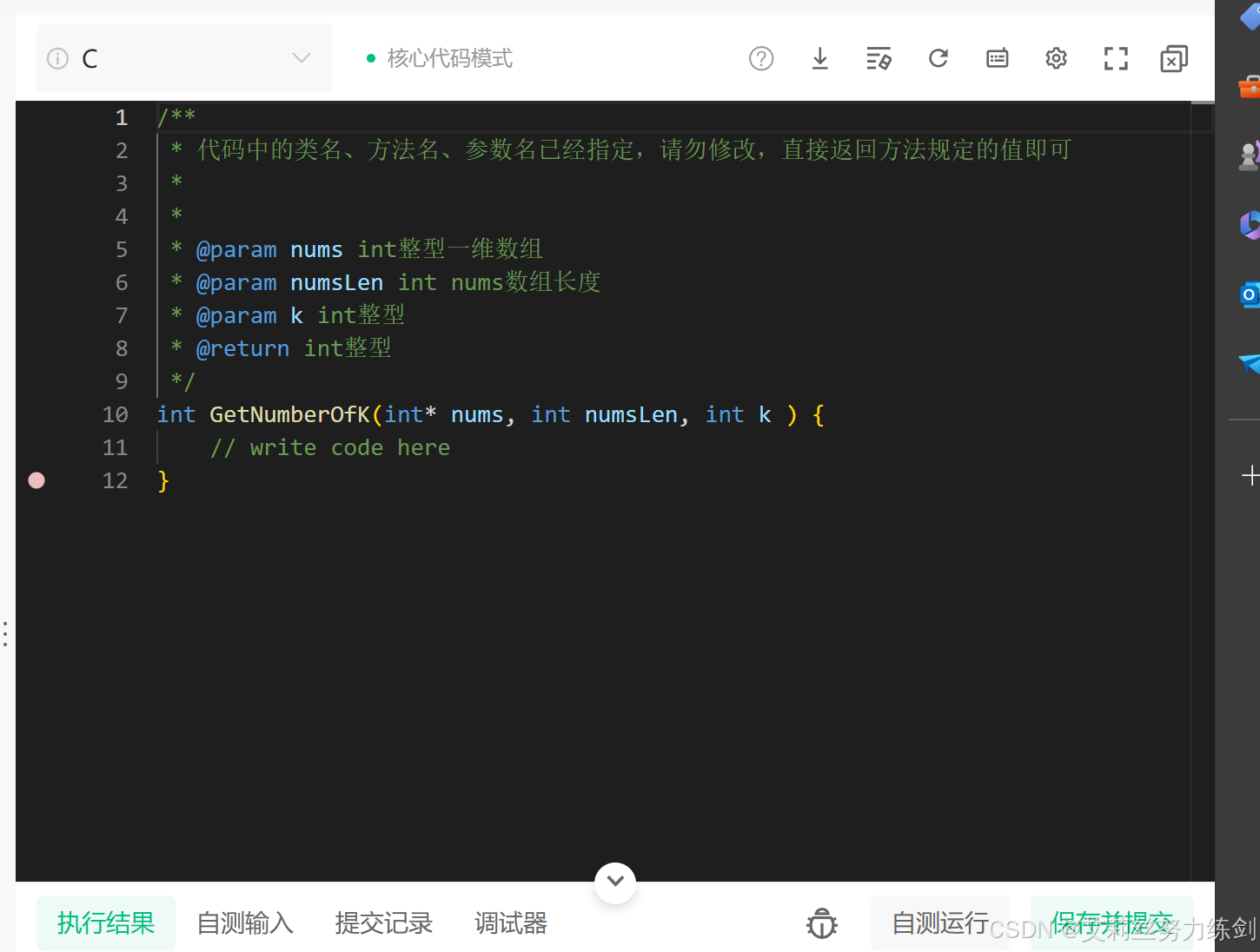 这道题既然说了长度为n的非降序数组(升序数组)、非负数整数k(0或正整数),而且要我们统计k(常见的叫法是val,这里叫什么都无所谓)出现的次数,也就是指定的一个数在这个长度为n的非降序数组中一共出现了几次,很简单,题目提示了这道题考查的是二分法。