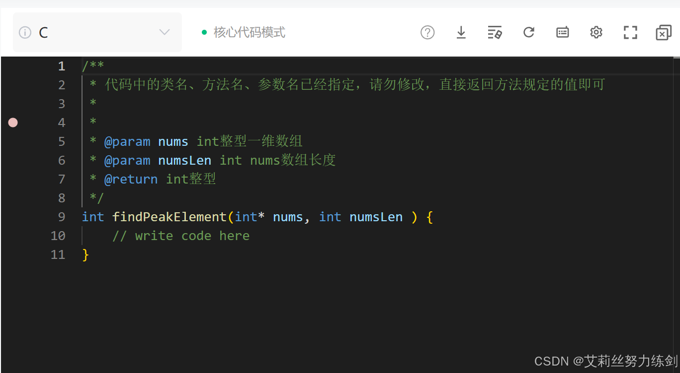 这道题是接口型的,下面是C语言的模版(如果是IO型就可以不用管它们了)——