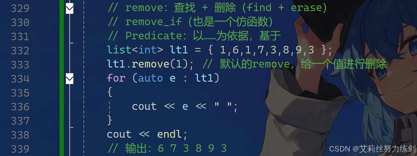 list<int> lt1 = { 1,6,1,7,3,8,9,3 };