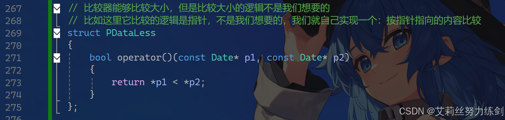 // 比如这里它比较的逻辑是指针,不是我们想要的,我们就自己实现一个:按指针指向的内容比较