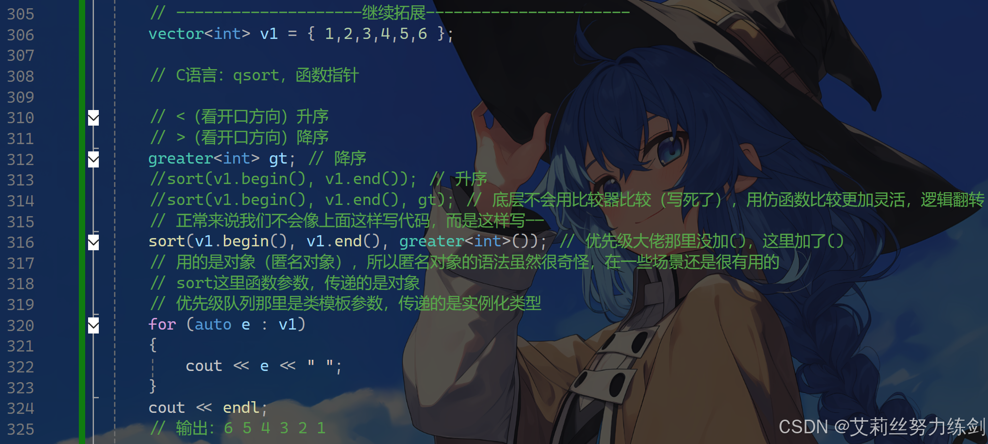 sort(v1.begin(), v1.end(), greater<int>()); // 优先级大佬那里没加(),这里加了()