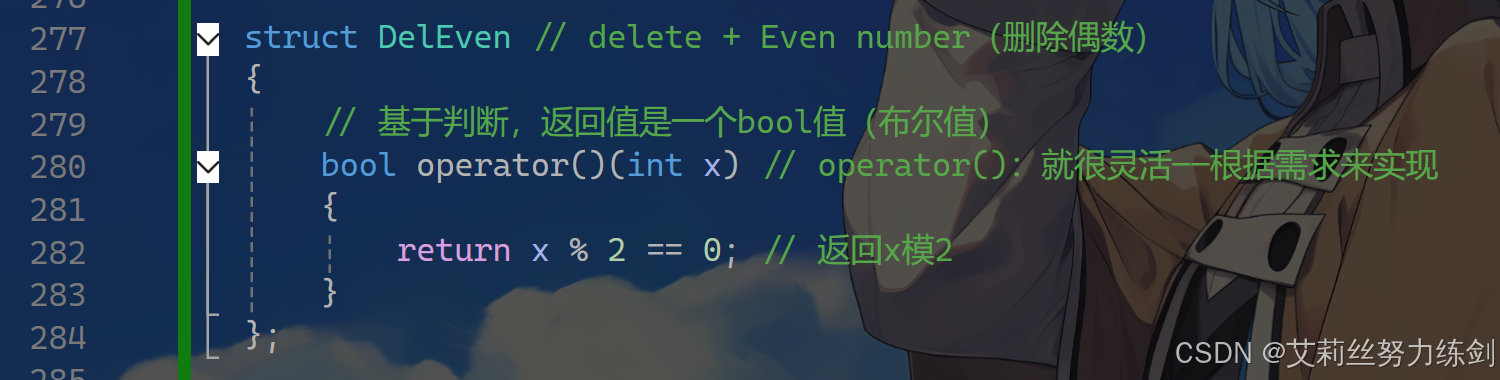 struct DelEven // delete + Even number(删除偶数)