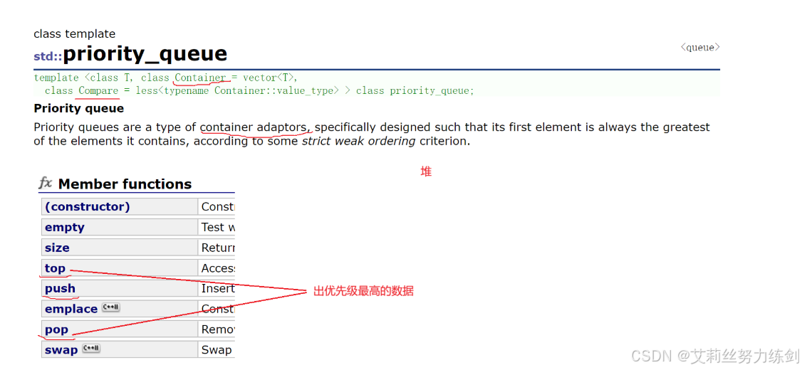 priority_queue的文档介绍:优先级队列文档