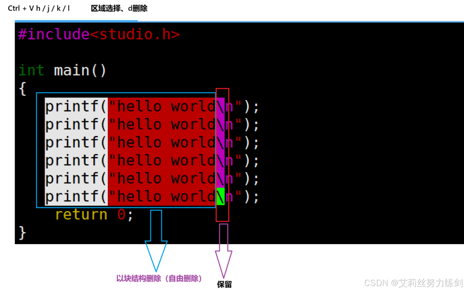 2、删除列:【x】,光标位置向后一次删除一次——
