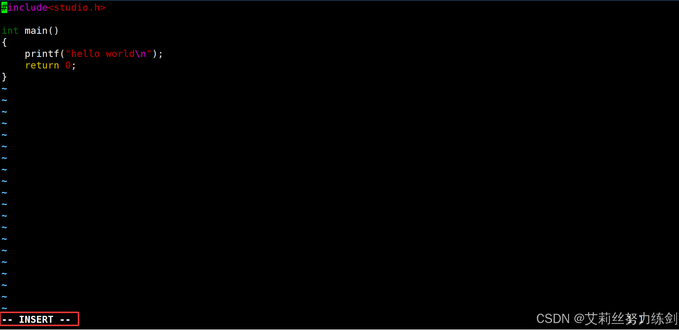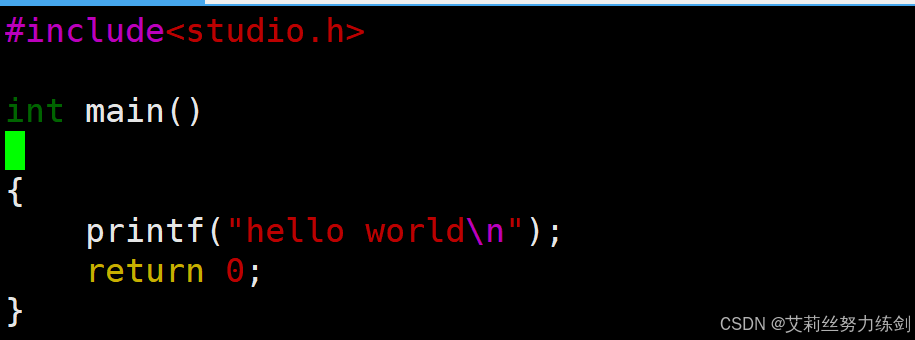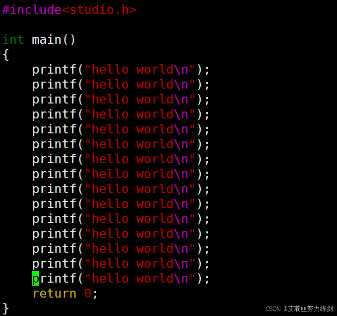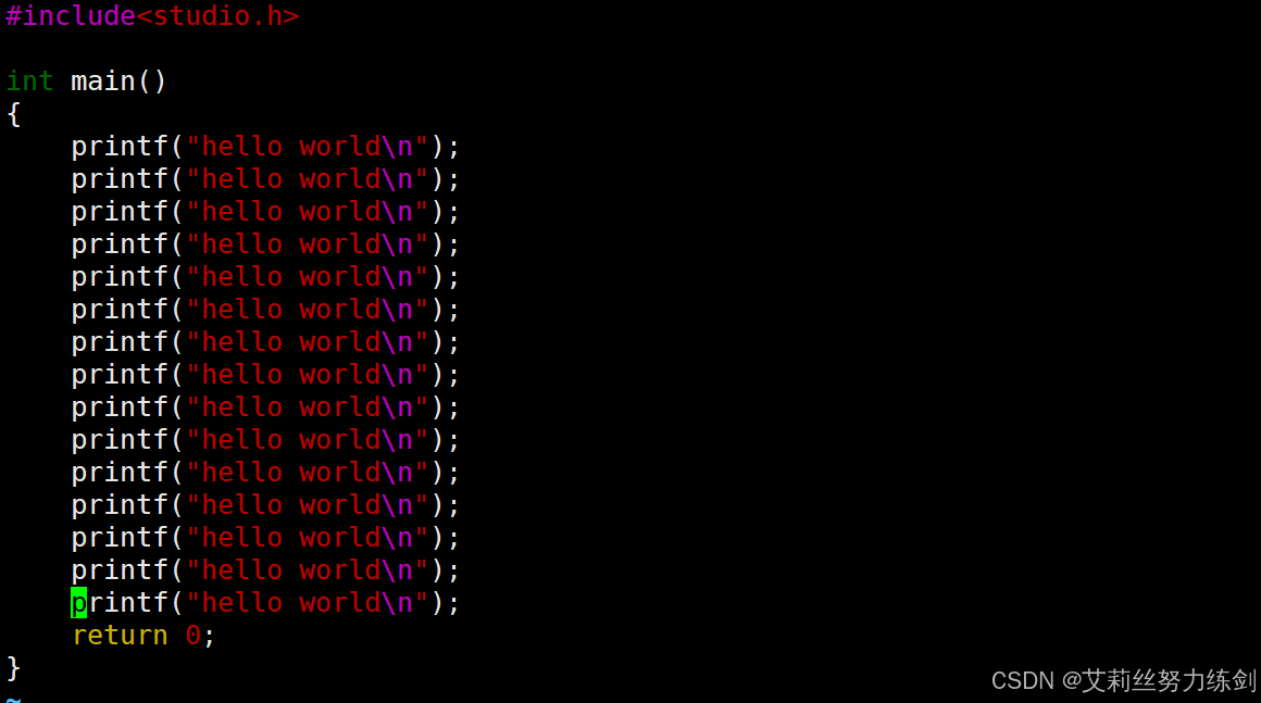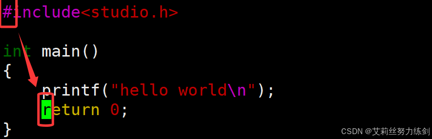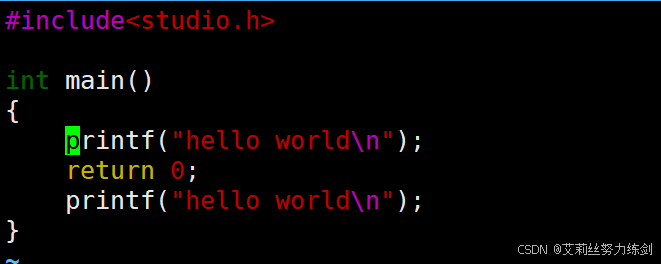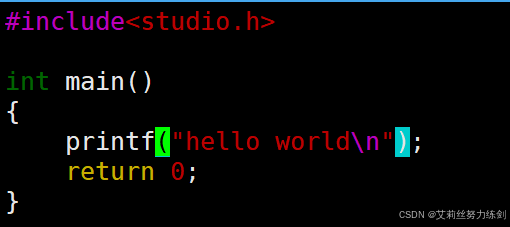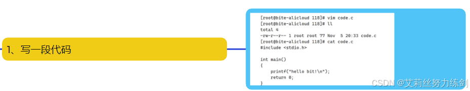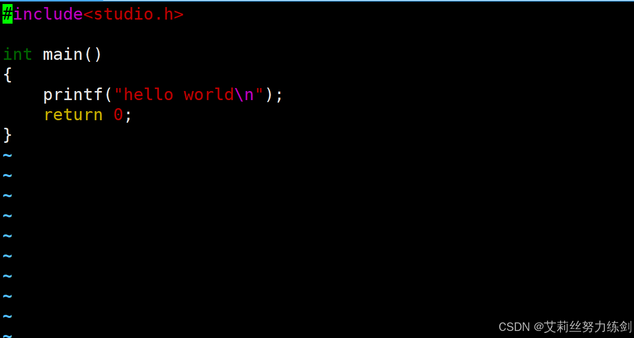 }这里艾莉丝演示一下怎么使用vim,顺便用cat打印一下——