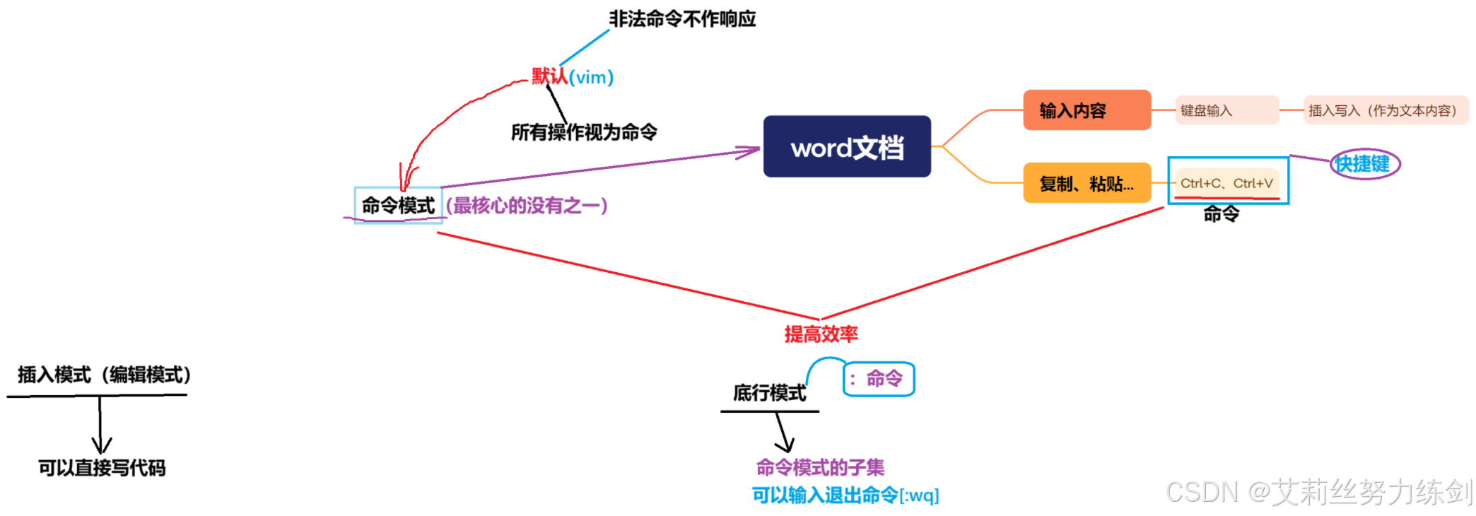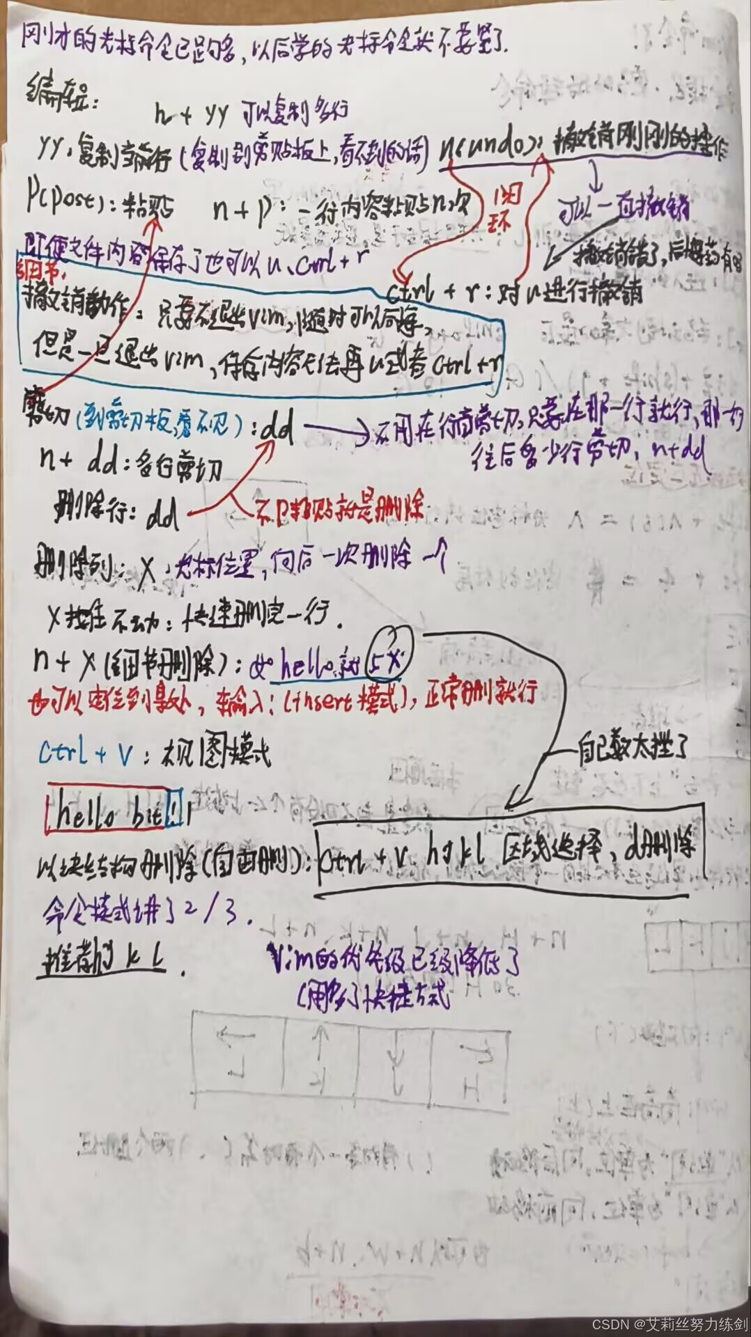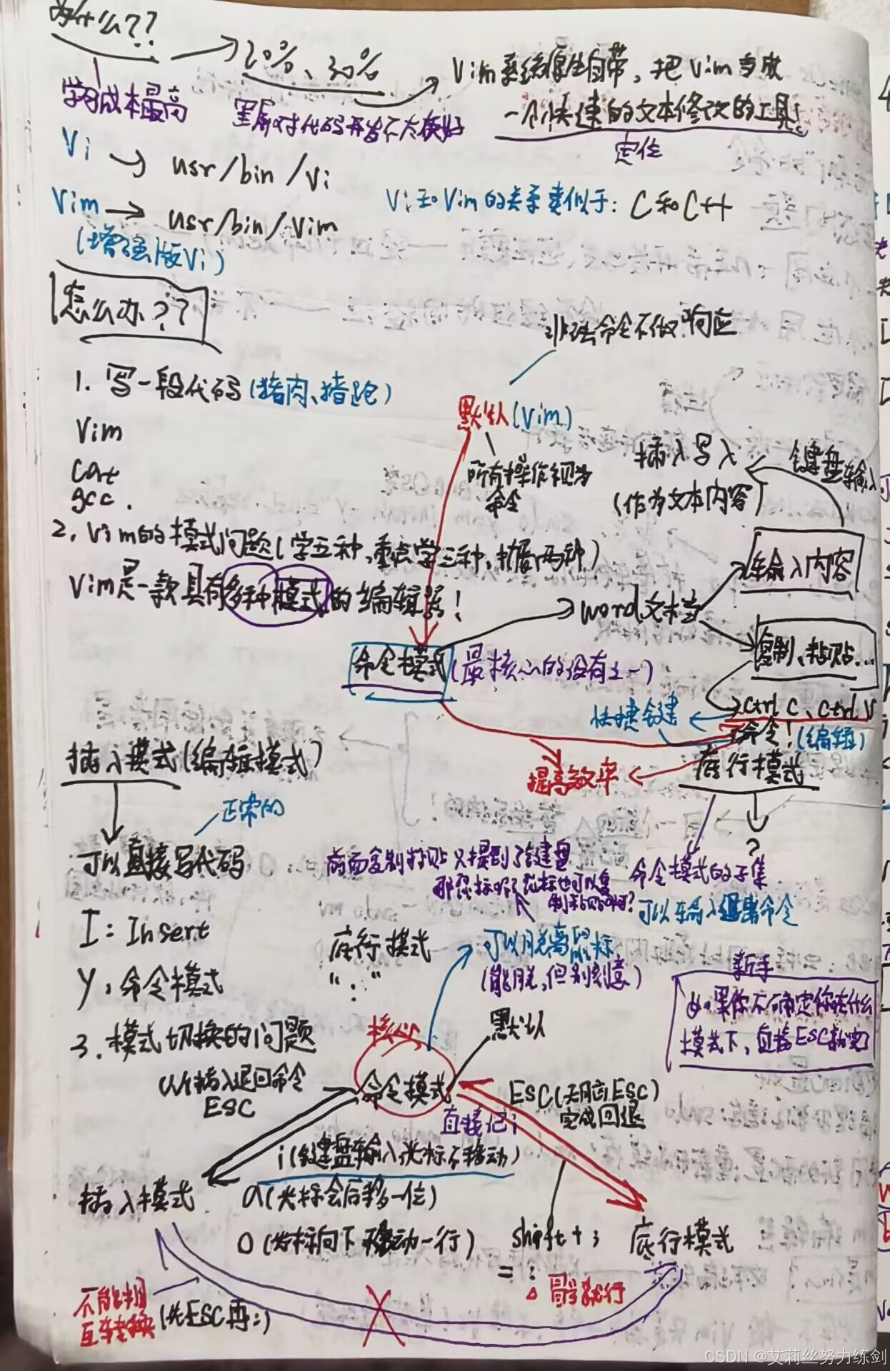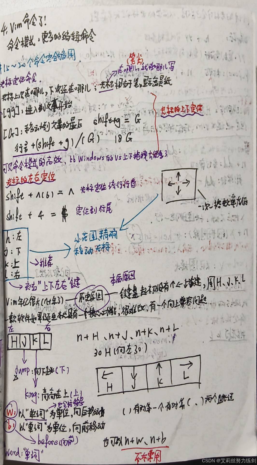 下面就是艾莉丝在学习vim这部分知识时的手写笔记啦,大家可以了解一下——