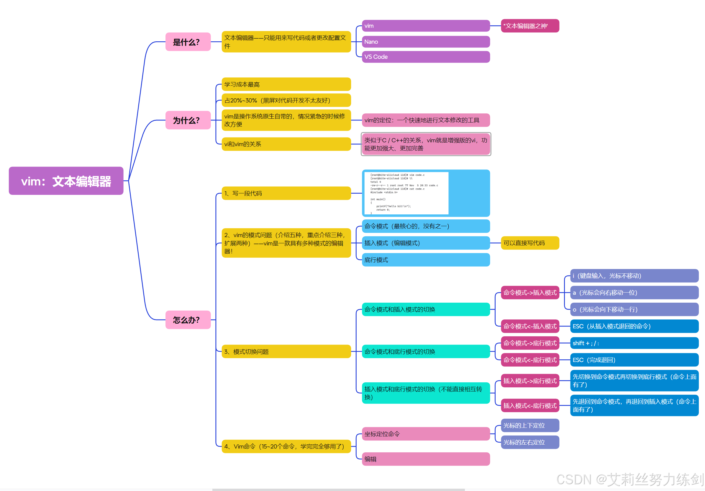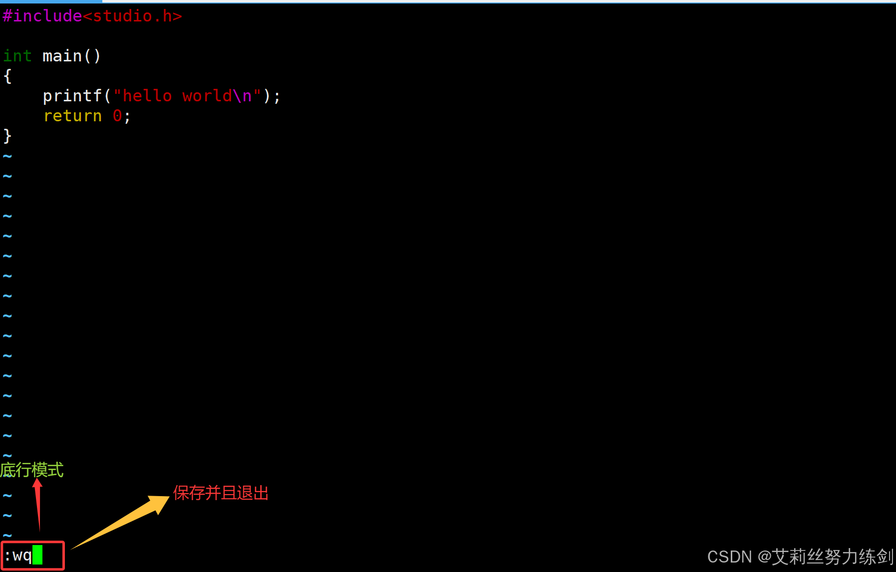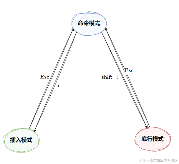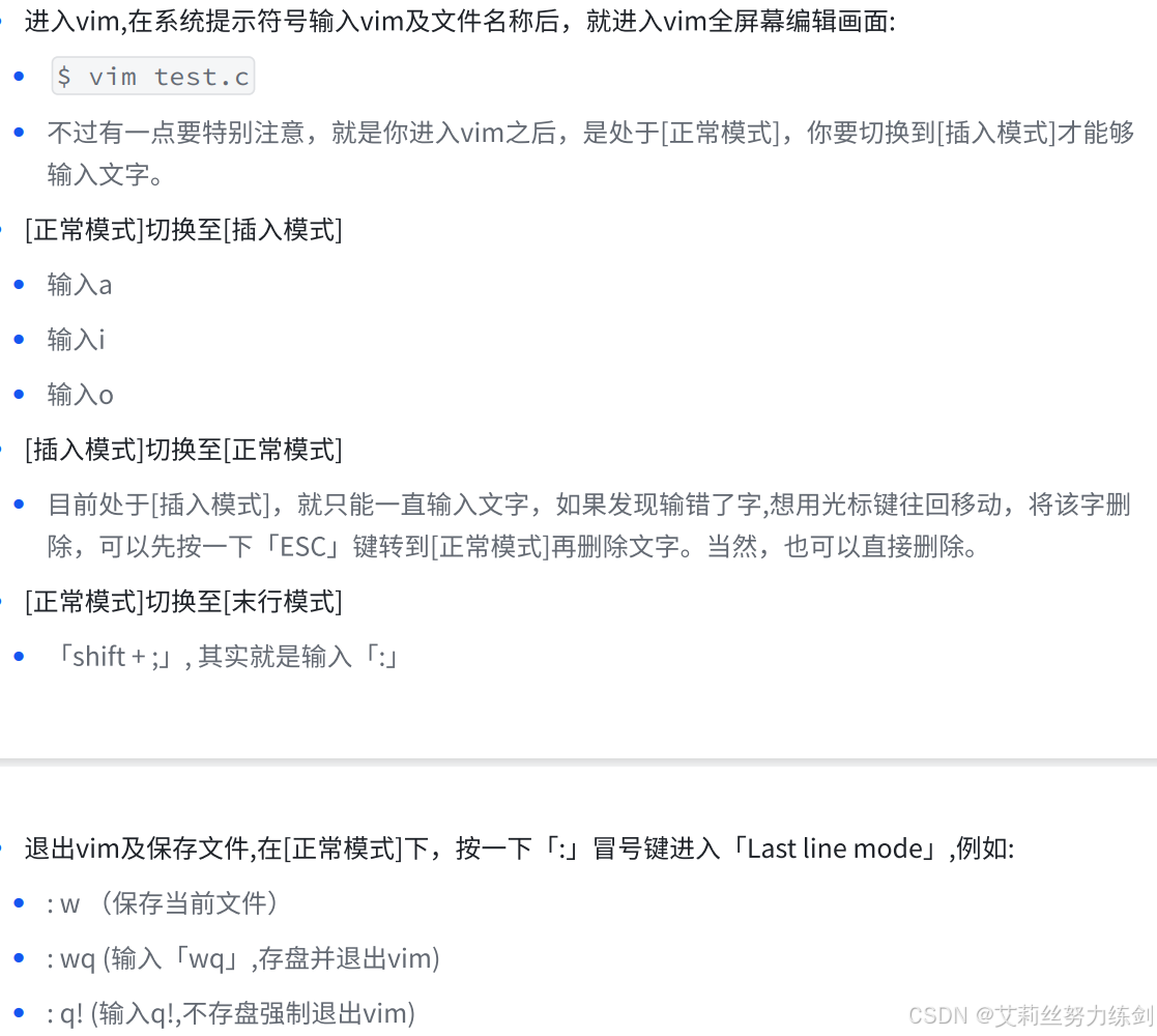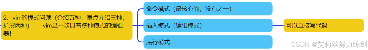 至于普通模式、底行模式是什么,艾莉丝会在本文的【vim的模式问题】那里介绍。