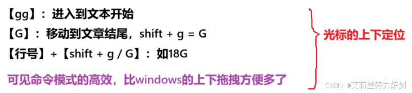 【G】:移动到文章结尾,锁定【大写模式】可以直接按G,或者shift + g = G,按shift + g——