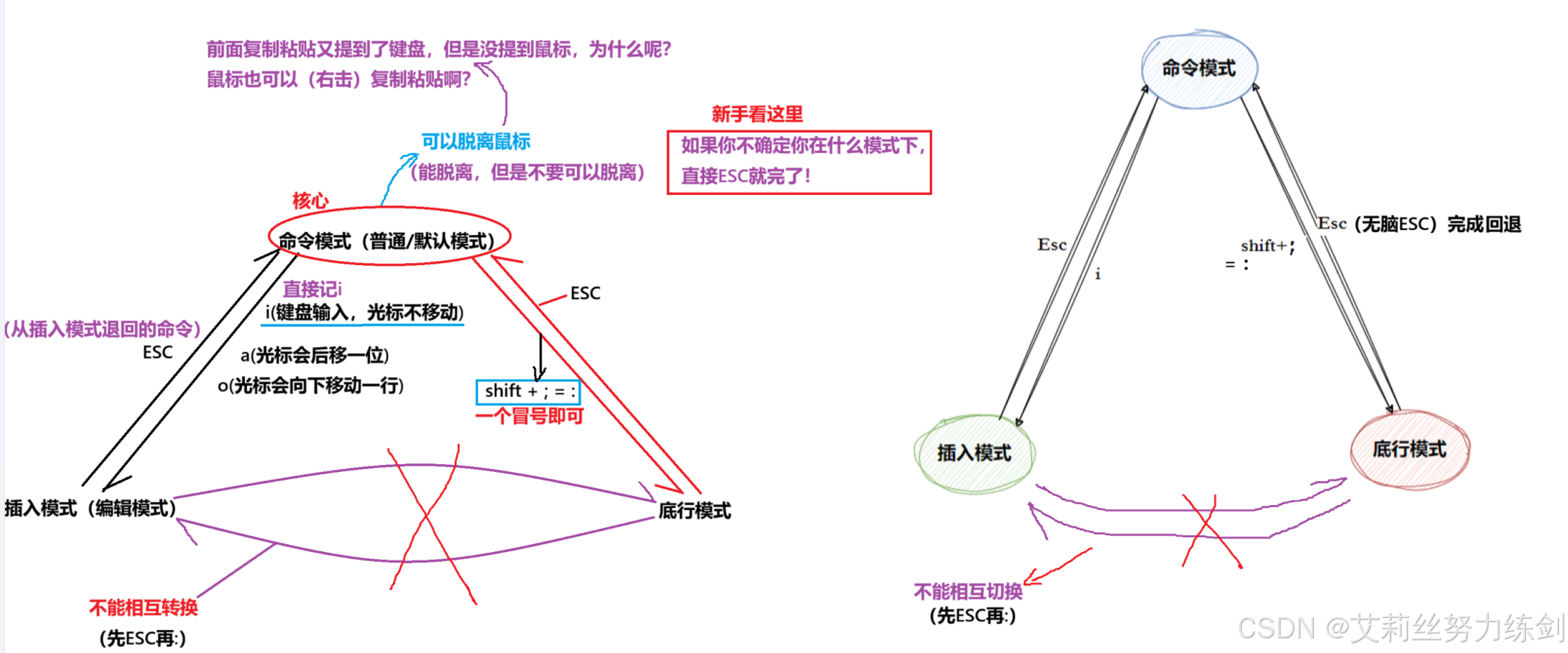 uu们只要记住:ESC就是我们的“安全键”,任何时候如果不确定在什么模式,就先按ESC回到普通模式(命令模式),再输入命令,确保万无一失。