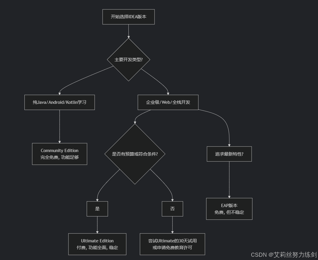 D --> K[追求最新特性?] --> L[EAP版本<br/>免费, 但不稳定];安装路径和选项看似简单,却深远影响后续性能。