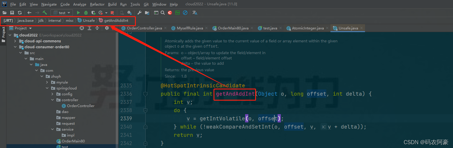 public final int getAndAddInt(Object o, long offset, int delta) {