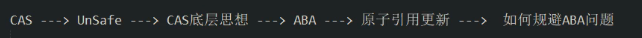 }第一个false的原因是已经被第一次比较并交换将值改成了2022,导致这一次的期望值(快照值/副本值)与主物理内存的真实值不一样,所以compareAndSwap结果为false。
