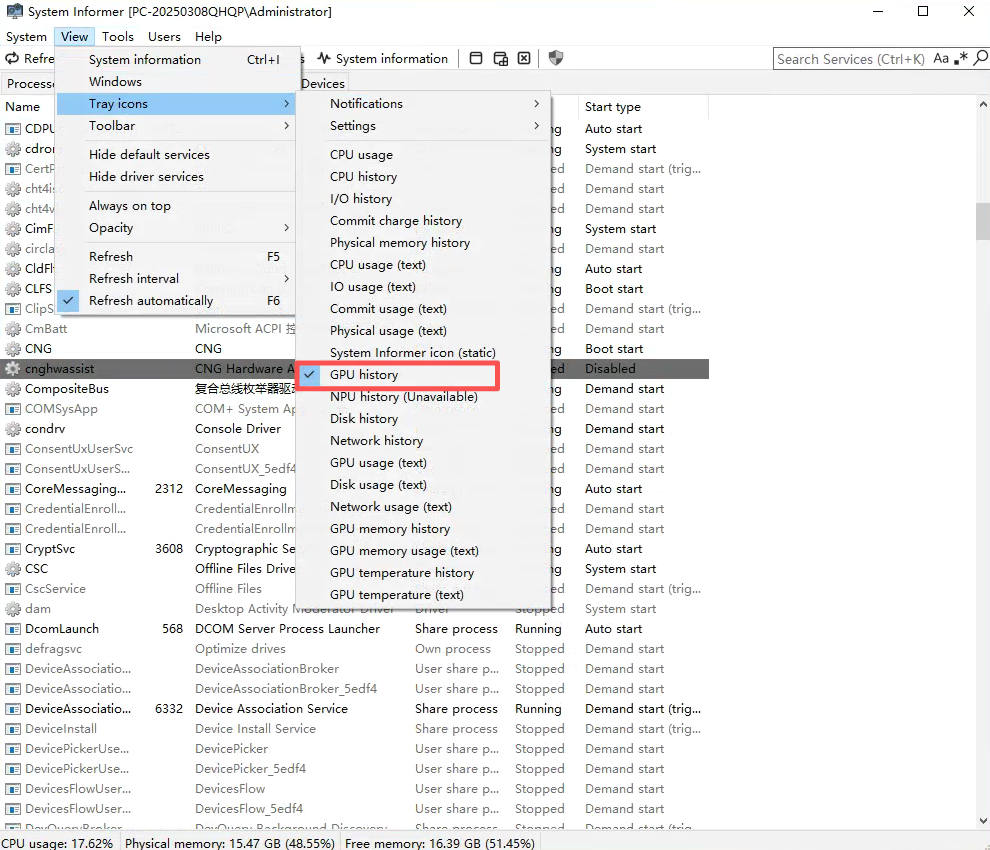 默认情况下,System Informer 除了显示普通用户模式服务外,还显示驱动程序条目。您可以通过勾选“查看”>“隐藏驱动程序服务”来关闭此功能。如下所示: