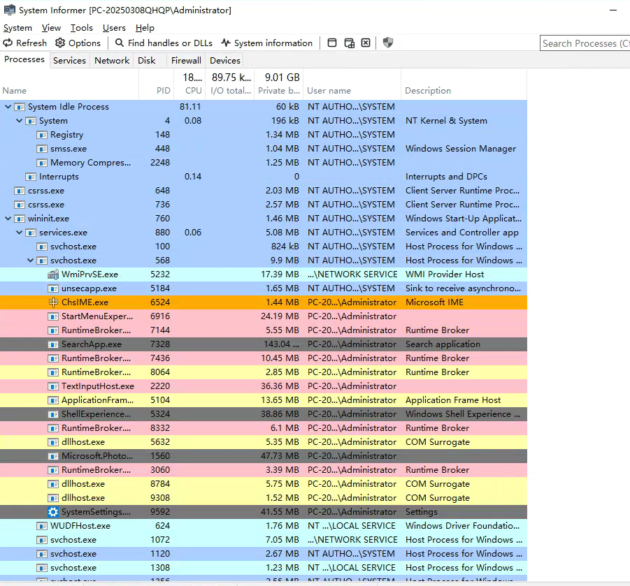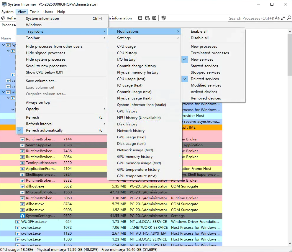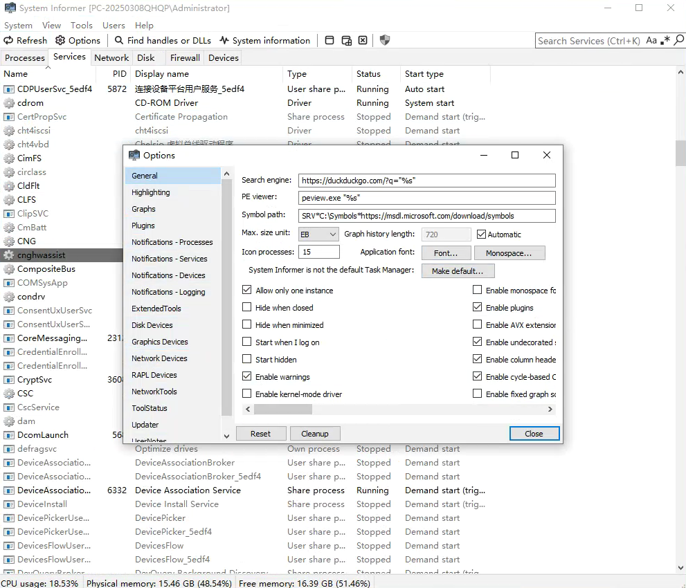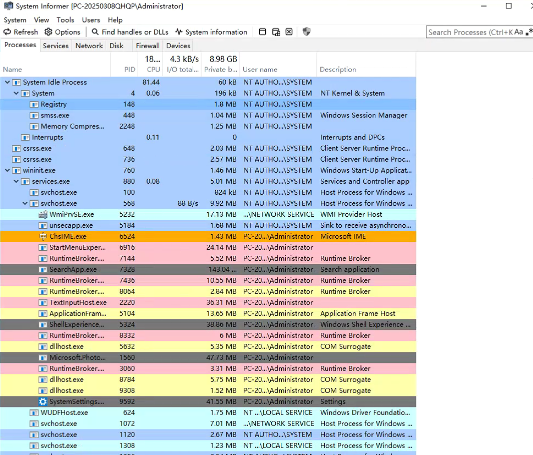 System Informer 支持浅色和深色主题,并提供现代图标选项。如下所示: