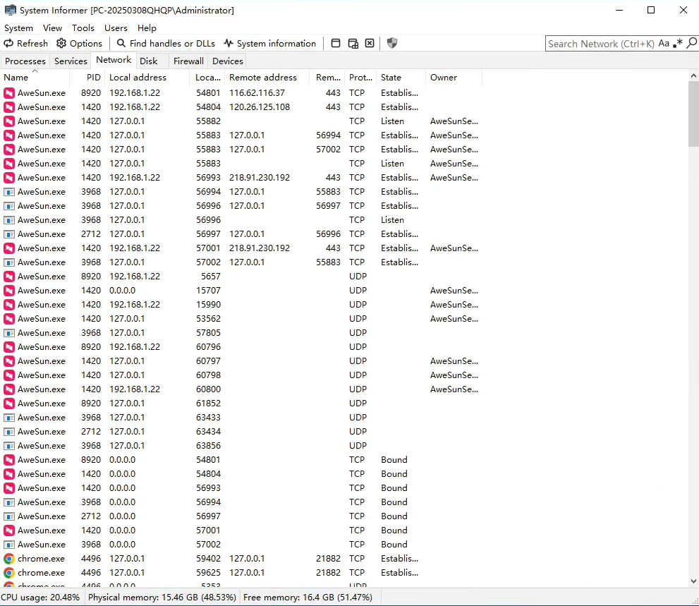 System Informer 是一款免费且功能强大的多用途工具,用于监控系统资源、调试软件和检测恶意软件。它提供实时图表统计、资源跟踪、句柄搜索、网络连接管理、磁盘和GPU活动监控,以及服务控制功能,帮助用户全面掌握系统性能。