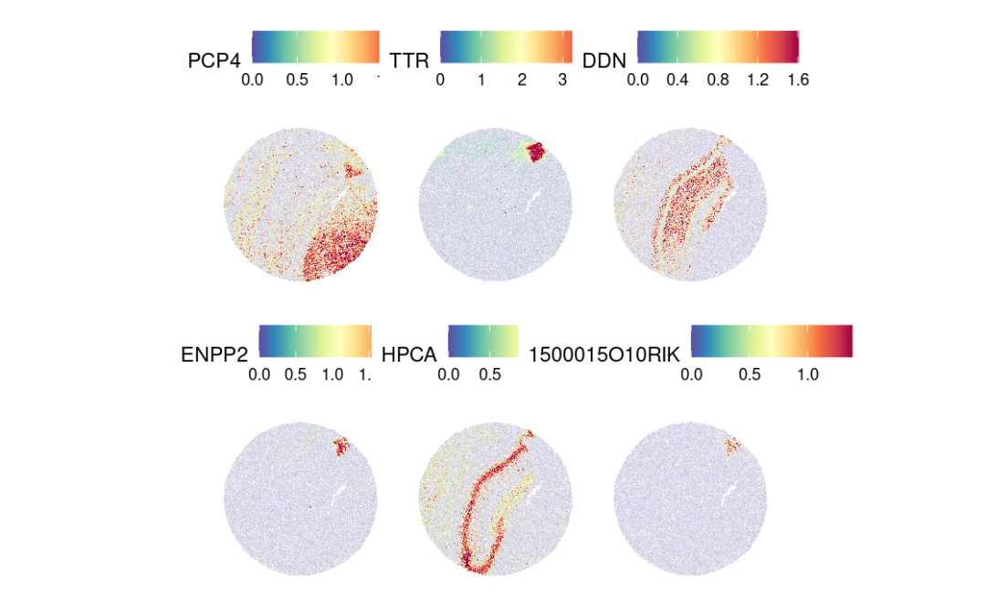 现在可视化Moran’s I法确定的前6个特征的表达。🙊