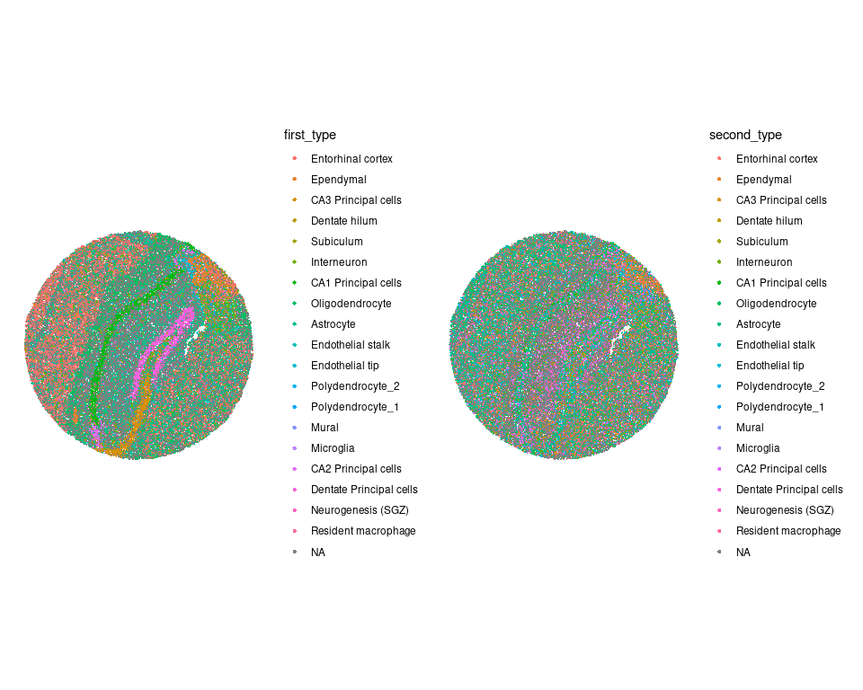 因为我们在doublet模式下运行RCTD,所以算法会为每个barcode或spot分配一个first_type和second_type。😏