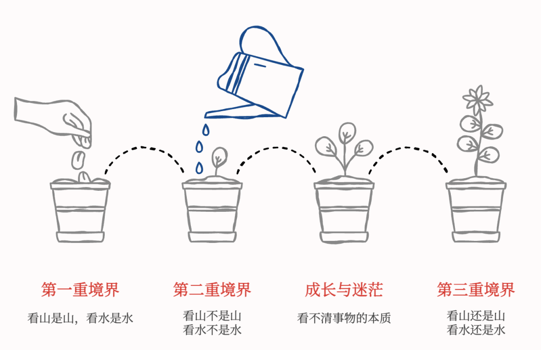 在展开讨论之前,我想先引入一个禅宗的著名公案——“看山的三重境界”,它能完美地概括一个分析师的成长: