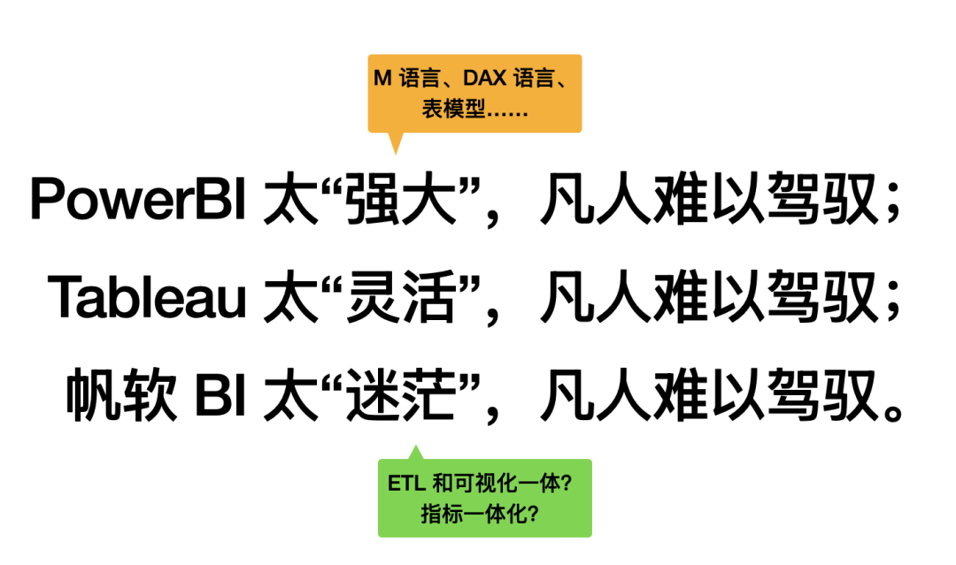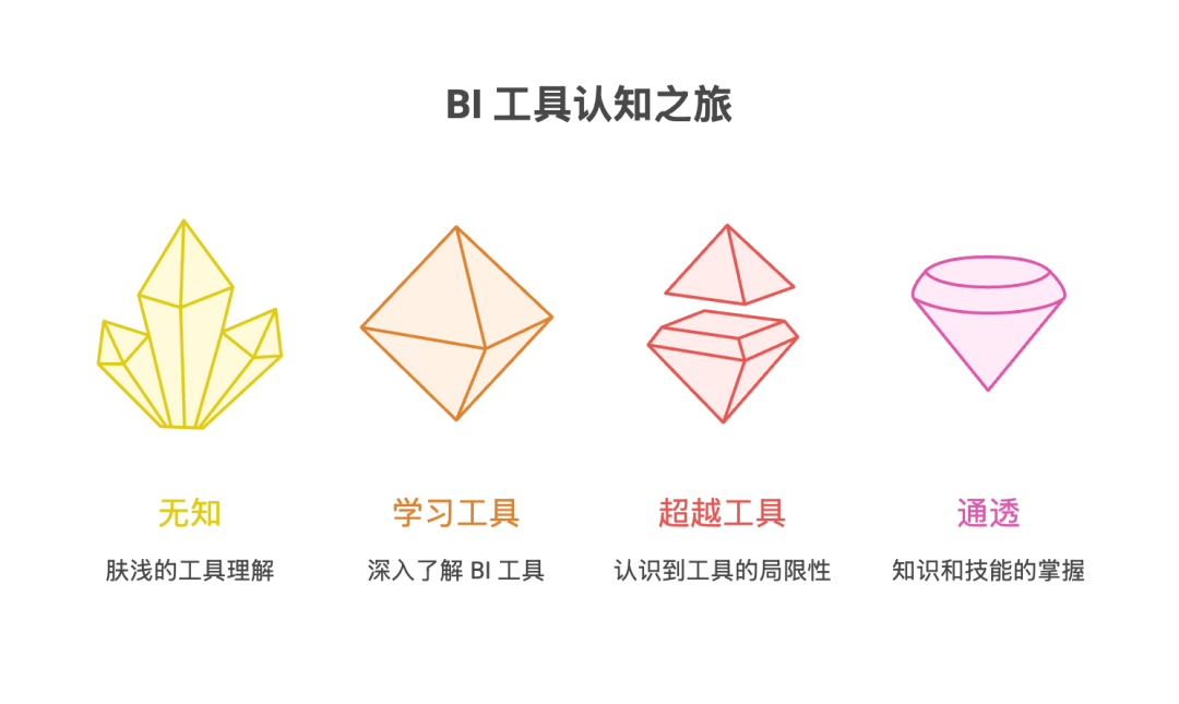 这个比喻,用来形容 BI 分析师对工具的认知过程,简直是再贴切不过了。