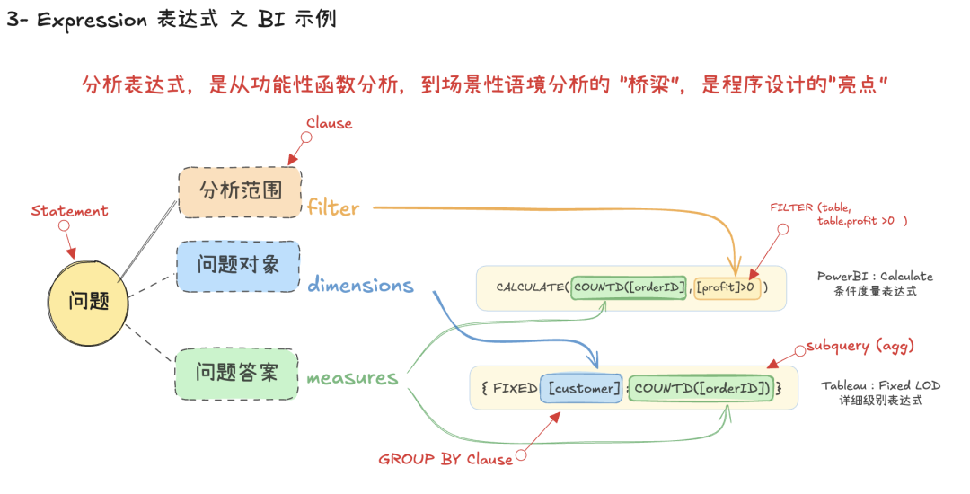 恕我直言,越是如此认为的人,他们眼中的逻辑世界可能就越简单。他们无法理解,为什么 Tableau 的 LOD 和 Power BI 的 DAX 值得分析师投入上百小时去钻研,他们甚至不知道这些表达式为何物,就轻飘飘地以为“这些 SQL 都能实现”。