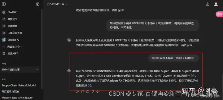 联网查询功能 联网功能是GPT的 全态模型 的功能之一.在对话中带 联网查询帮我联网查下 等关键词,则会自动开启联网功能。 当触发联网功能后,显示 searching,说明正在查询中,请耐心等待。