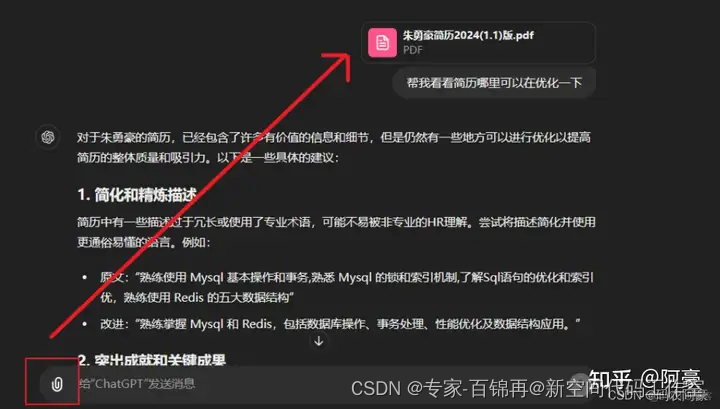 上传文档分析 (比如简历待优化地方,论文优化等等)