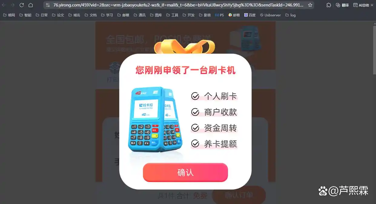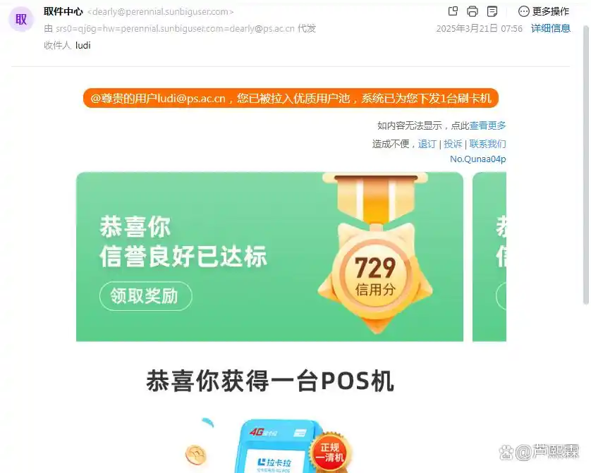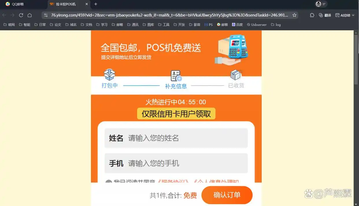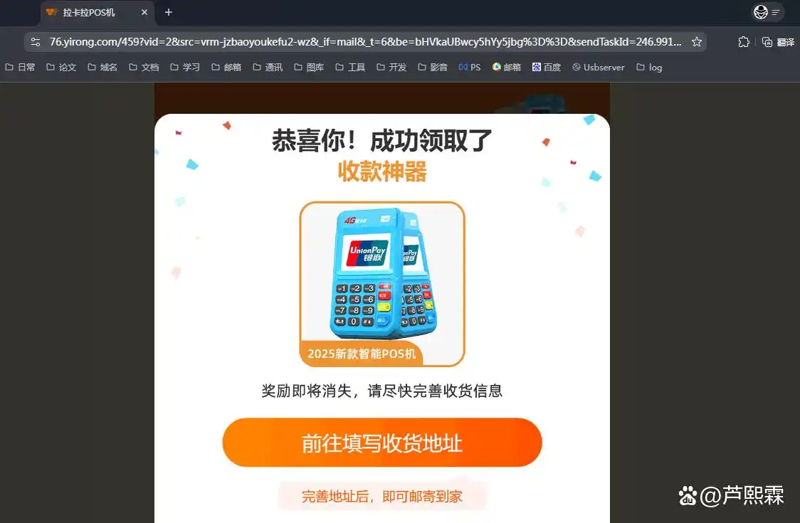 用户点击钓鱼邮件中的链接,进入伪造的“拉卡拉POS机”页面。