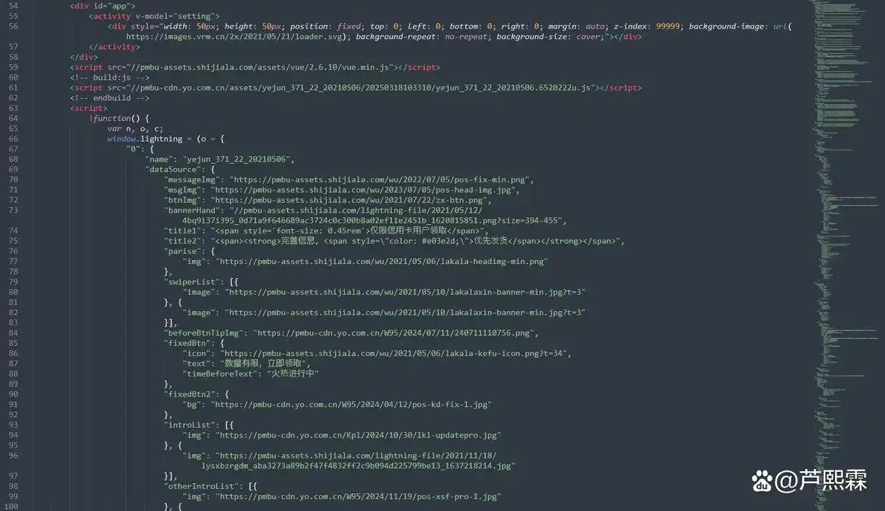 pmbu-cdn.yo.com.cn、pmbu-assets.shijiala.com:域名注册信息需验证,可能为临时搭建的钓鱼资源服务器。