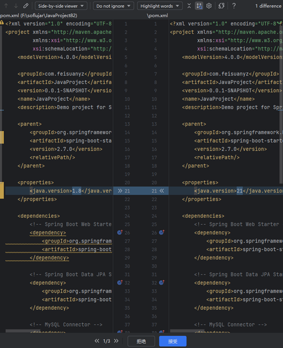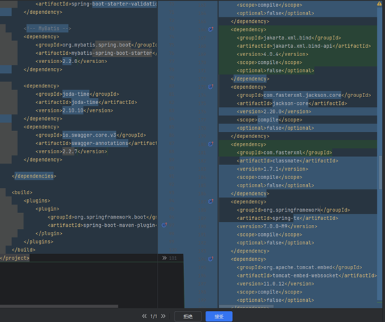 处理依赖问题:用 “Jar 依赖修复器” 扫描项目,发现spring-boot-starter-web版本过低(2.2.6),有安全漏洞,自动帮我升级到 2.7.15,还删除了 3 个冗余依赖(commons-lang3,项目里没用到),避免内存浪费。