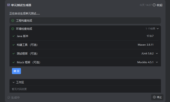 遇到需要结合业务调整的地方(比如单元测试里的业务异常提示),插件会给出建议,不会 “一刀切”。