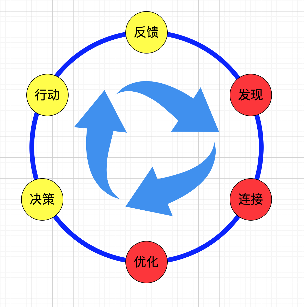 在这个连续体中,红色代表对流程和系统的理解,包含发现、连接和优化。发现是系统的感知器官,负责从海量数据中探查现实。连接是系统的神经,负责打通各个孤立的部分。优化则是基于反馈进行的自我调整。黄色代表执行与响应,包含决策、行动和反馈。决策是系统的大脑,负责分析并制定策略。行动是系统的软/硬肢体,负责执行任务。反馈则是系统与环境的接口,负责接收反馈并启动新一轮循环。
