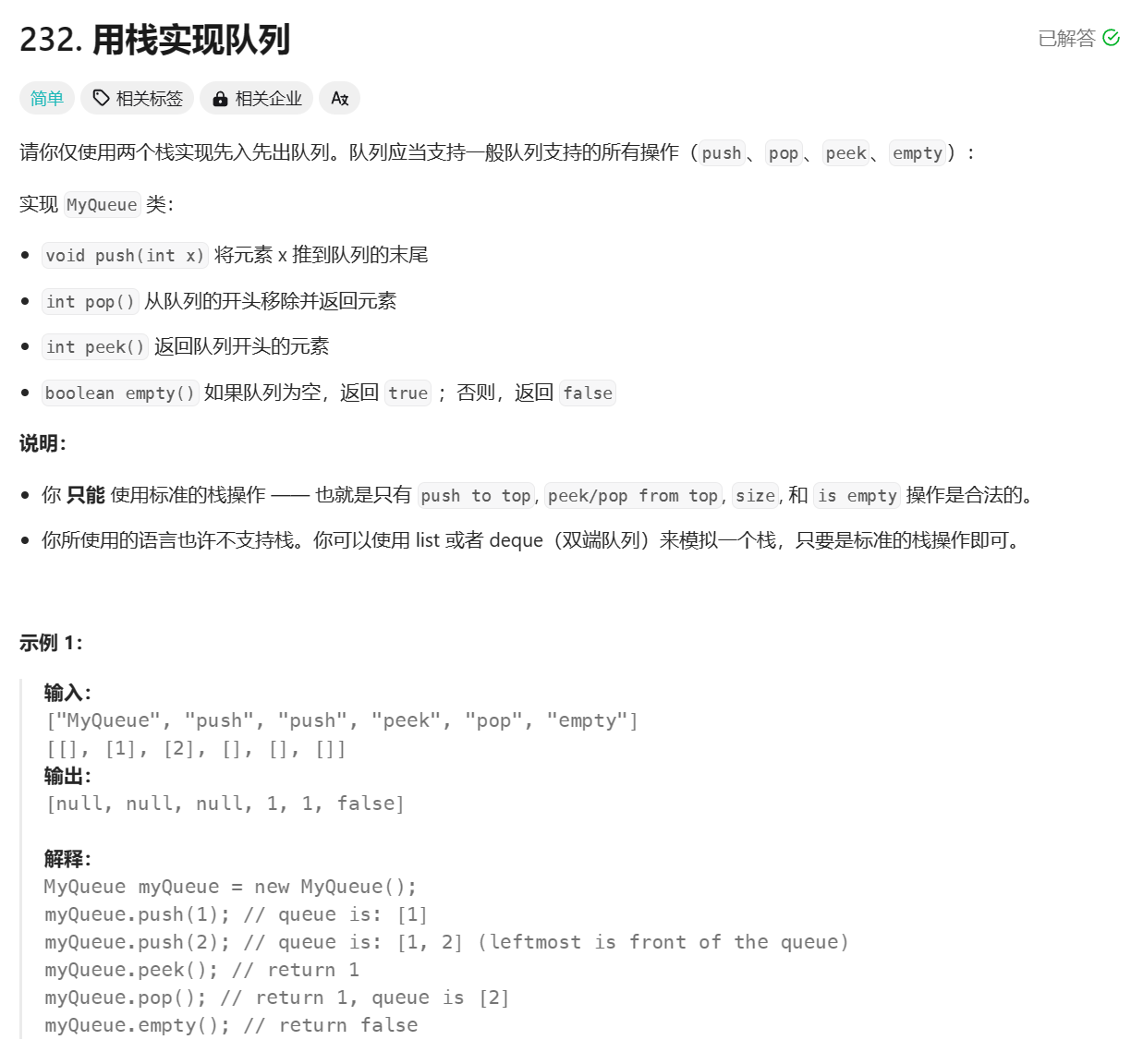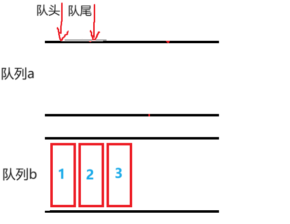 需要模拟出队操作时只需要把栈a导到栈b中,然后在进行出栈就行,即出栈顺序就成了1,2,3,4而不是4,3,2,1,那么我们考虑把元素保持在栈b中,需要入队(入栈)的时候在把它导到栈a中,入完后再导回来。 这样就能实现先进先出的效果。