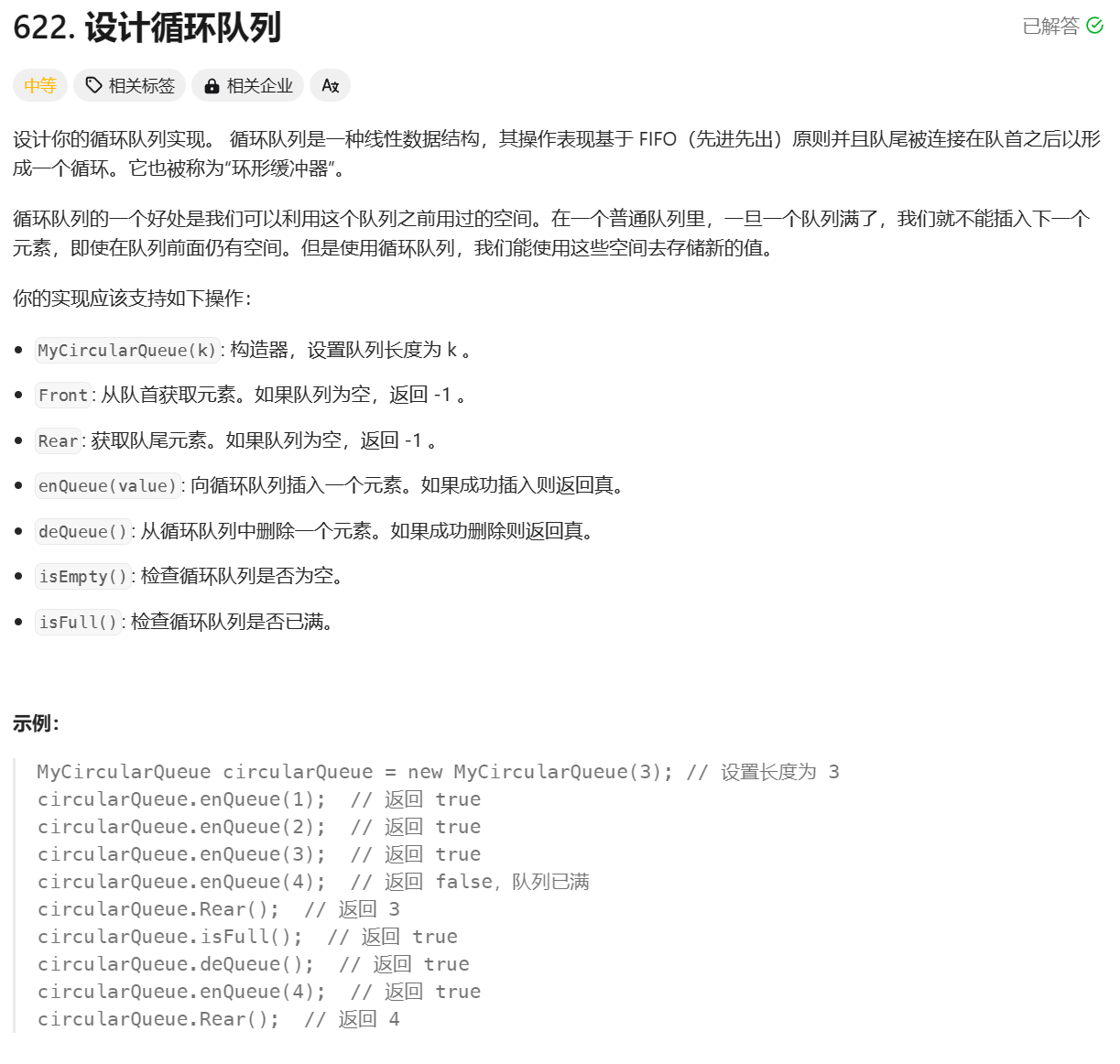 对于循环队列的实现我们可以使用顺序表或链表,不过使用链表比较复杂,更为推荐使用顺序表,此题我们就以顺序表来解决。