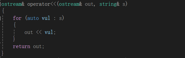 ostream& operator<<(ostream& out, string& s)