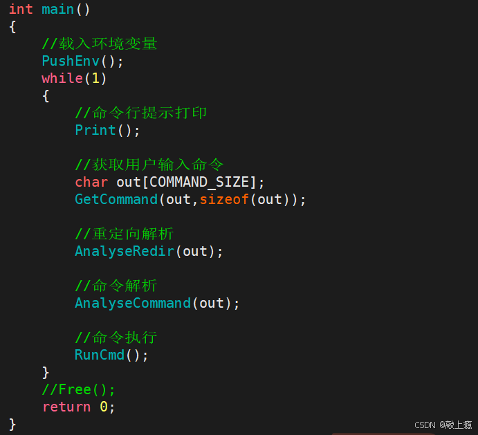 }获取用户输入,因为用户输入的命令行参数是一个字符串,中间含有空格。所以我们不用scanf,cin进行输入。这里我们使用fgets。