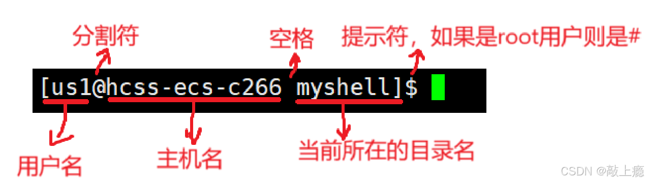 #define OTHER_PROMPT "[%s@%s %s]$ "对于用户名,主机号我们可以通过getenv从环境变量中得到,但是获取当前路径我们不能使用getenv,因为我们myshell的环境变量使用的是父进程的环境变量,我们在当前使用cd命令切换路径环境变量中的pwd并不会有改变。