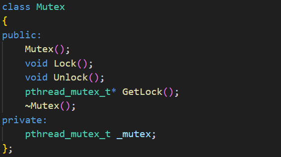 int pthread_mutex_unlock(pthread_mutex_t *mutex);void Unlock()实现:
