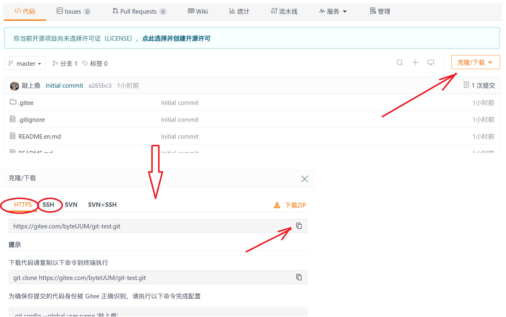 克隆远程仓库(Clone a Remote Repository) 是指将网络上的 Git 仓库(如 Gitee、GitHub、GitLab 等平台上的项目)完整复制到本地计算机的操作。