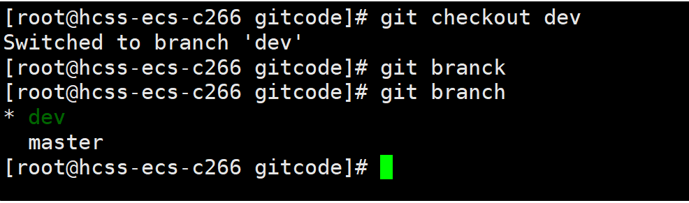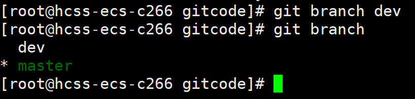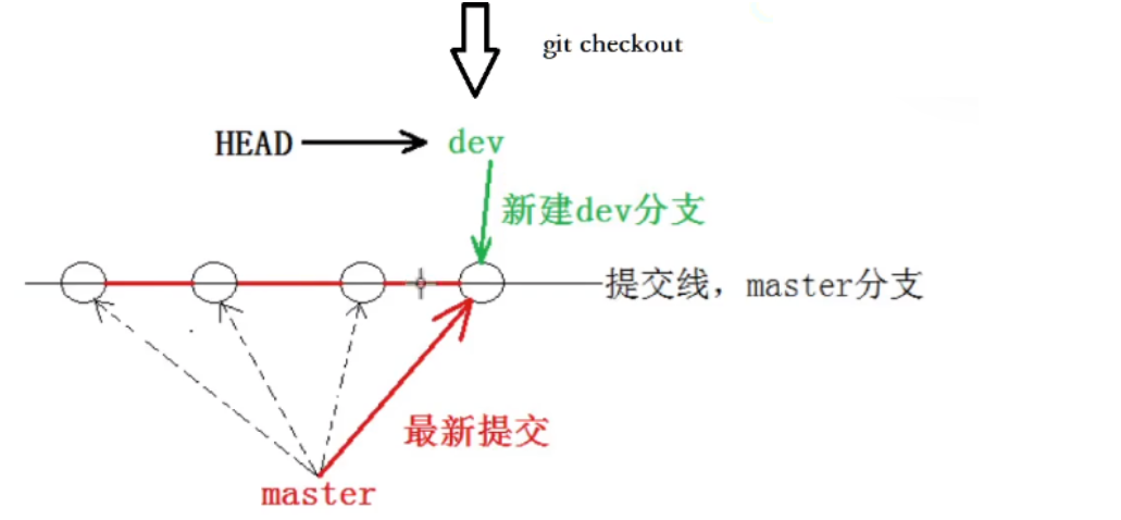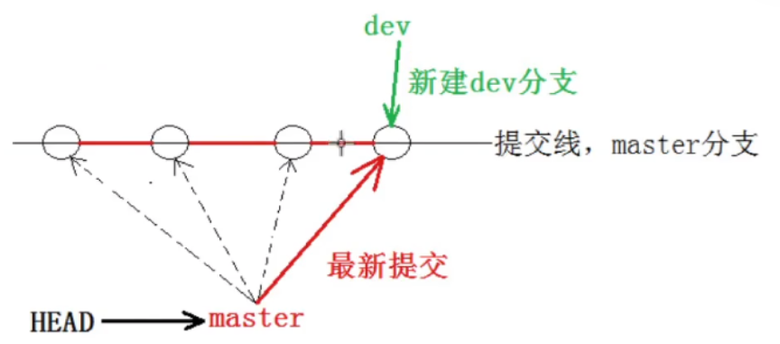注意:创建新分支(dev分支)的“根”是当前所在的分支。新分支的内容是基于最新提交的内容。