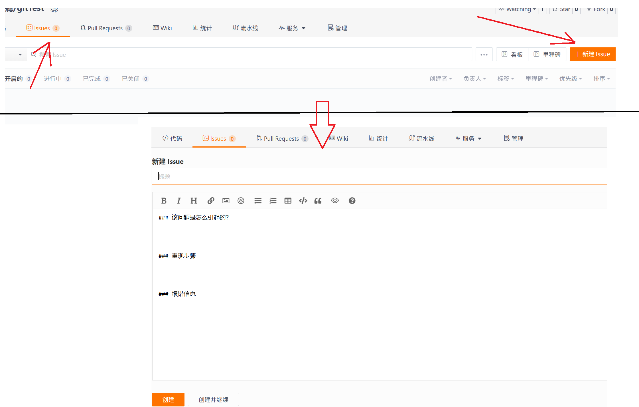 issue模板:开发者(用户)在使用你的服务或使用你的代码过程中可能会发现一些bug,或者提出一些优化建议,Issue 模板 的主要作用是规范用户提交 Issue 的格式和内容,帮助项目维护者更高效地收集、分类和处理问题或建议。