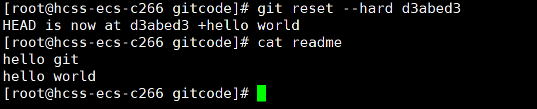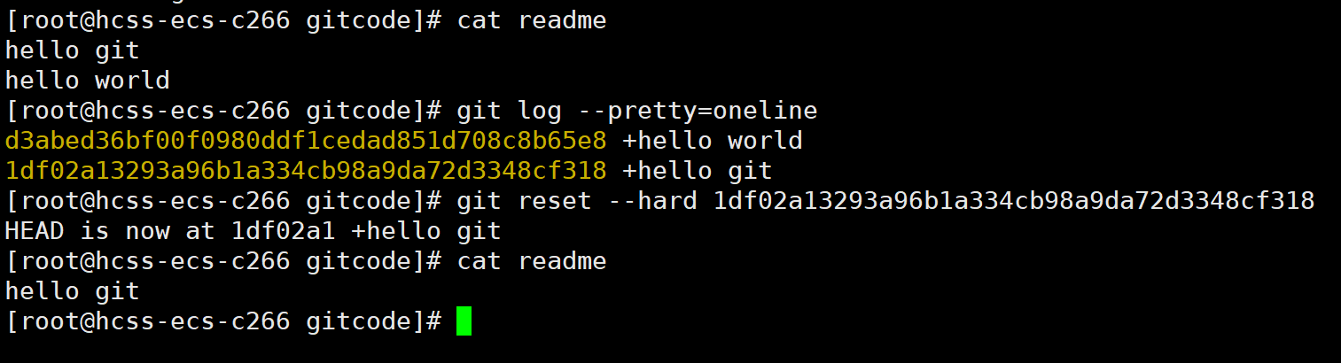 现有两个版本的readme内容,老版本hello git,新版本hello git和hello word,下面简写为git和world: