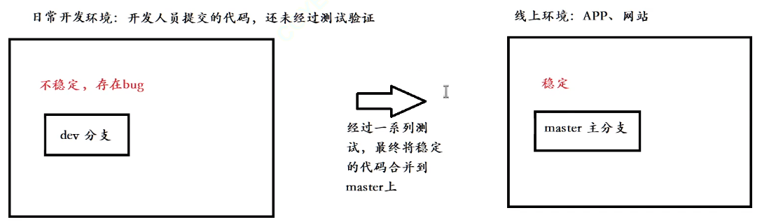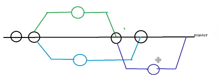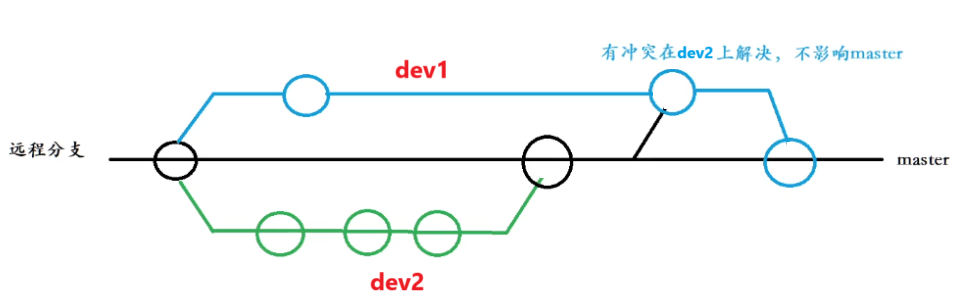 一个团队要开发一个项目,每个让可以延伸出一条分支,各自开发者负责自己的功能,最后进行测试再把它们进行合并在一起。