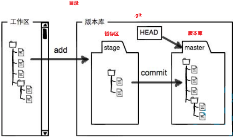 我们在对文件进行操作是在工作区的,但并未得到git的管理,还需要把它放到.git里。